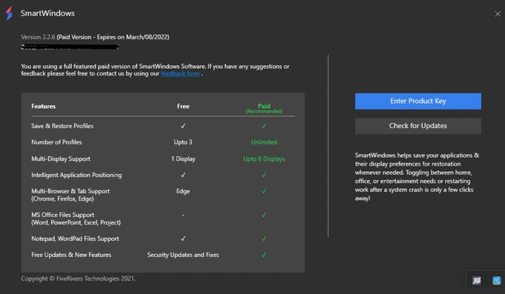 6.1. Here you can see detailed information on all the free and paid features of SmartWindows.