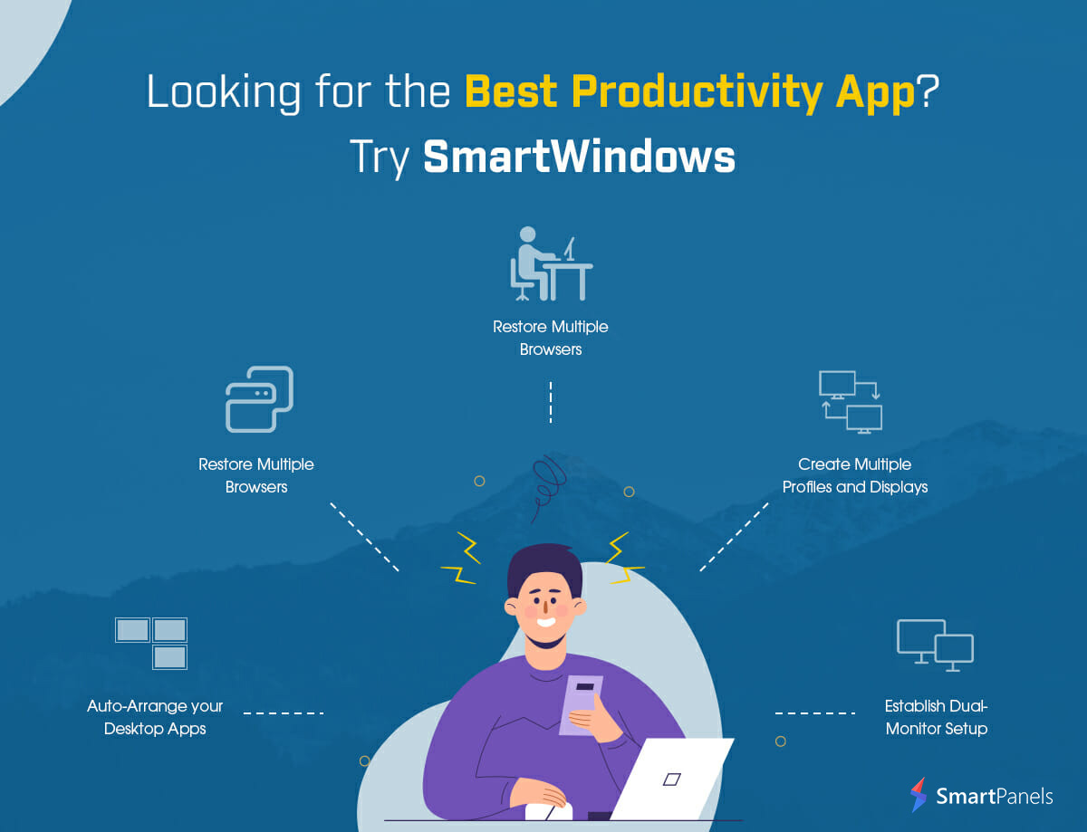 If your computer shuts down as a result of a sudden restart, power outage, or unexpected Windows updates, you lose all your screen arrangements. Again, you are supposed to go through the app opening and arrangement tasks that are very tedious and time-consuming. SmartPanels eliminates this overhead by giving more power to your Windows 10 & 11.